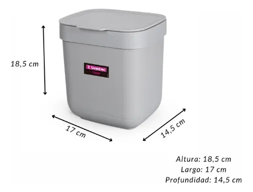 Especificaciones del producto Capacidad: 3 litros Uso: Mesada / fregadero Sistema: Tapa manual Material: Plástico resistente