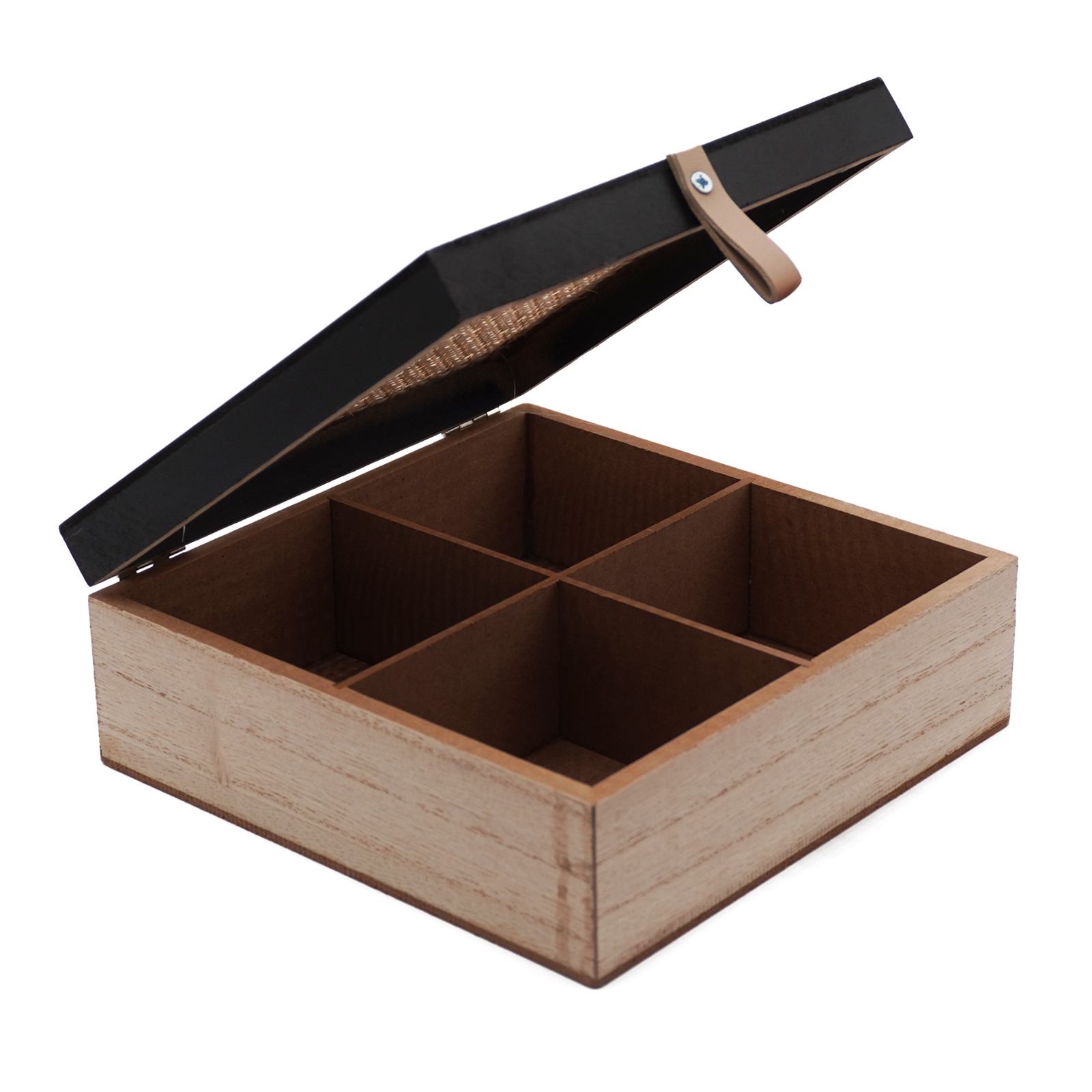 El organizador EMy Square Black es una caja de madera cuadrada con tapa y compartimentos interiores, pensada para mantener tus espacios ordenados con un estilo elegante y funcional. Confeccionada en MDF con detalles en ratán, combina materiales naturales con un diseño moderno que se adapta a cualquier ambiente de tu hogar u oficina. Cuenta con 4 espacios