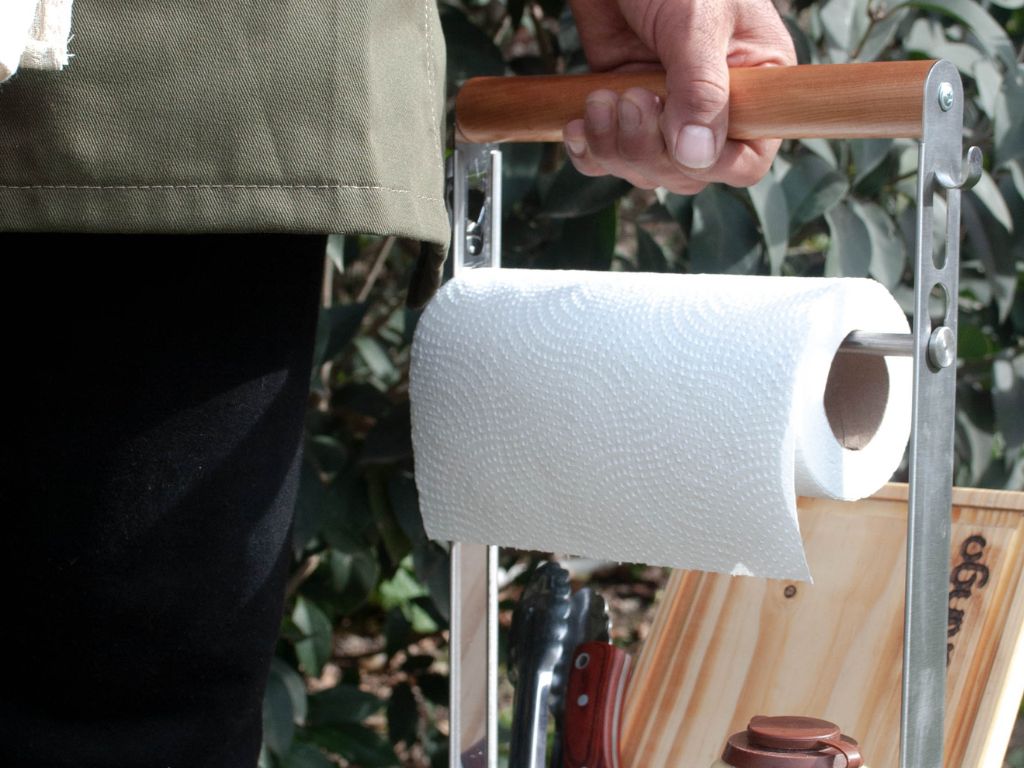 - Fabricado en acero inoxidable de alta calidad y mango de madera torneada ideal para su traslado. Incluye un accesorio para colocarlo en superficies verticales que facilite su guarda.