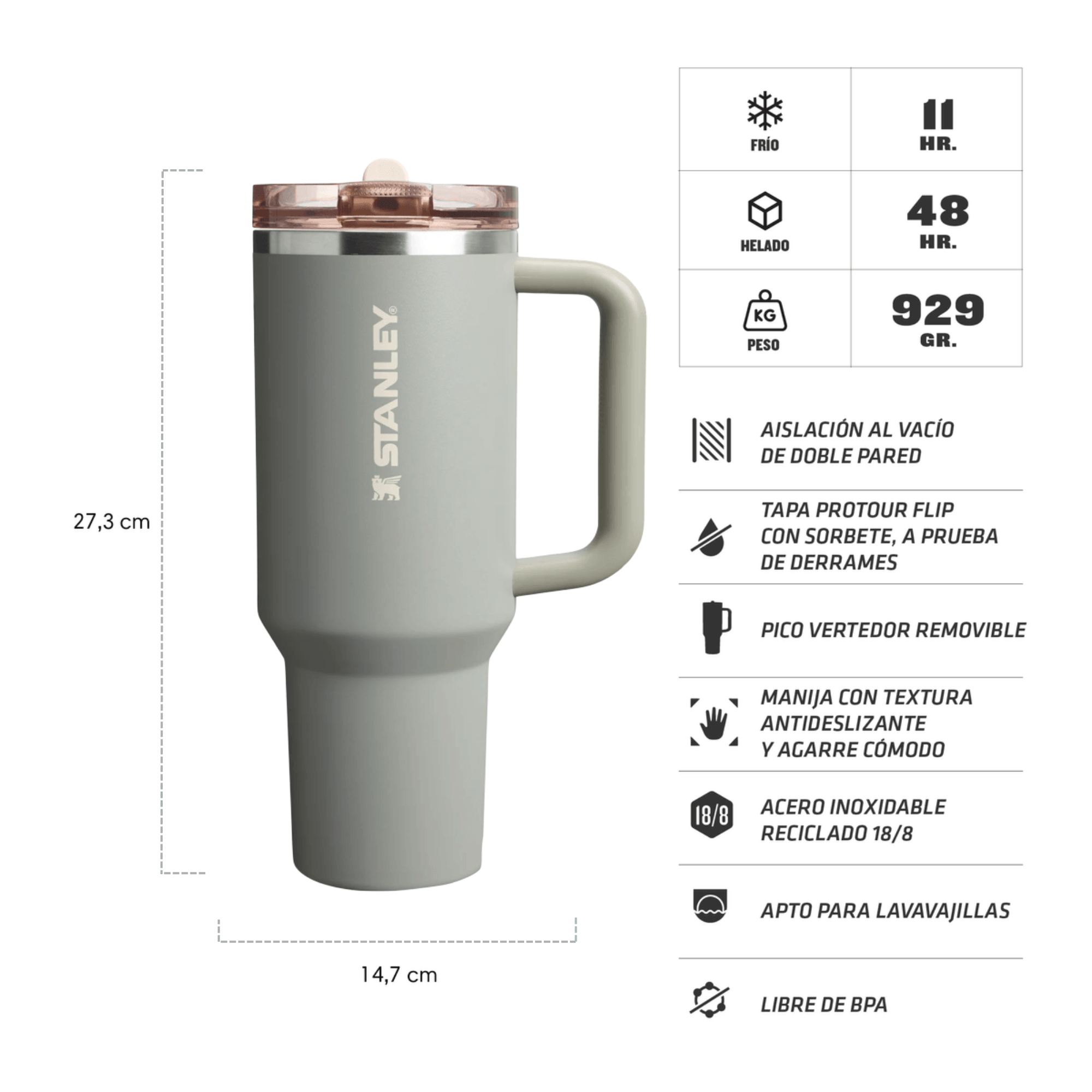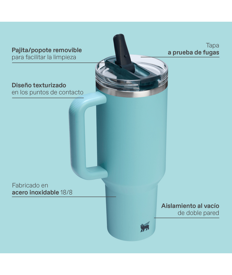 Este vaso combina comodidad, resistencia y eficiencia para quienes necesitan mantenerse hidratados sin perder el frío de las bebidas, con la garantía de calidad de Stanley.