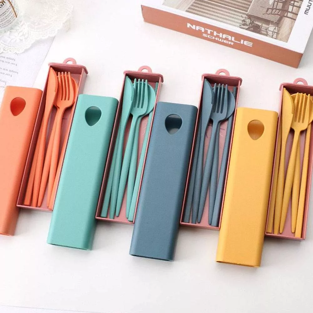 Contenido: 1 cuchara, 1 tenedor, 1 cuchillo y 1 par de palitos.