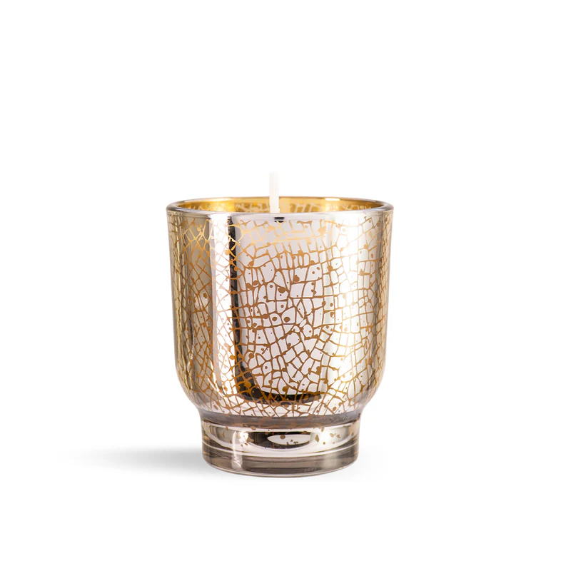 La vela de cera de soja Glow Up combina delicadeza y brillo en un vaso de vidrio facetado, que refleja la luz con elegancia y aporta un toque festivo a cualquier espacio del hogar. Ideal para acompañar reuniones, brindar calidez y realzar la decoración navideña.